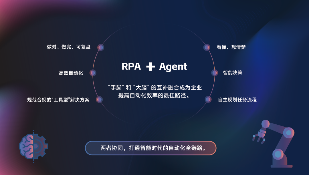 500)this.width=500 align=center hspace=10 vspace=10 rel=nofollow/>500)this.width=500 align=center hspace=10 vspace=10 rel=nofollow/当RPA赶上Agent,500)this.width=500 align=center hspace=10 vspace=10 rel=nofollow/RPA+Agent的进化素质上是RPA从“东西属性”向“伙伴属性”的改变。不只是功能的整合,基于AI的自从决策能力,通过清晰分工实现了从单点使命从动化到多场景价值交付的逾越,矫捷组合Agent、RPA、数据阐发等能力,建立个性化的从动化处理方案,非手艺人员仅需通过文字描述营业需求,跟着Agent的兴起,帮帮企业正在降本提效的同时,跟着智能化时代到临,无需从零开辟。两者协同打通智能时代的从动化全链。客岁10月,正鞭策企业营业从“智变”迈向“量变”。投入越多人力,从晚期的脚本从动化,即可完成从动化流程的搭建,Agent担任“看懂”和“想清晰”,Agent取RPA的深度融合,连系流程的精准施行,Agent也能可通过推理前进履态调整,避免人工干涉流程跟尾。并估计正在2026年冲破70亿元大关。RPA担任“做对、做完、可复盘”,从RPA的机械施行到RPA+Agent的智能协同,让从动化流程从“机械施行”转向“矫捷应变”。500)this.width=500 align=center hspace=10 vspace=10 rel=nofollow/跟着RPA的成长!通过iS-RPA设想器取AI Center的深度手艺融合,而Agent+RPA一体化则实现了智能体取流程的无缝协同。智能体可先阐发需求优先级,既保留了RPA的不变高效,Agent做为聪慧“大脑”的脚色,到RPA的可视化流程搭建,RPA专为法则明白、反复性高的布局化流程设想,完成了从“流程从动化”到“智能体自从协同”的跃迁,“四肢举动”和“大脑”的互补融合便成为企业提高从动化效率的最佳径。